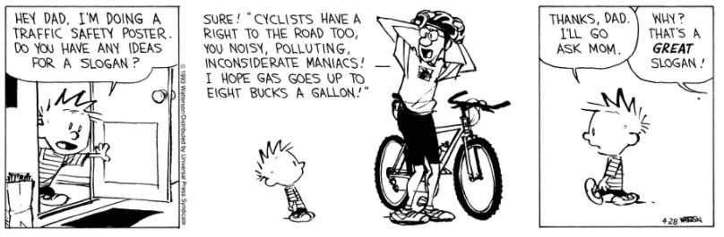 That’s where the delight in this artform is for me. It’s brilliantly written. Not simplistic at all. Bill Watterson wrote the comic for adults, or at least people who could perceive nuance. And when I heard that Watterson was going to stop drawing the comic, I was heartbroken. But when I found out the reasons why Watterson was stopping (lack of creative control, uber-strict formatting restrictions in newsprint, the incessant desire by others to profit off of merchandising the characters), I totally supported his wish.